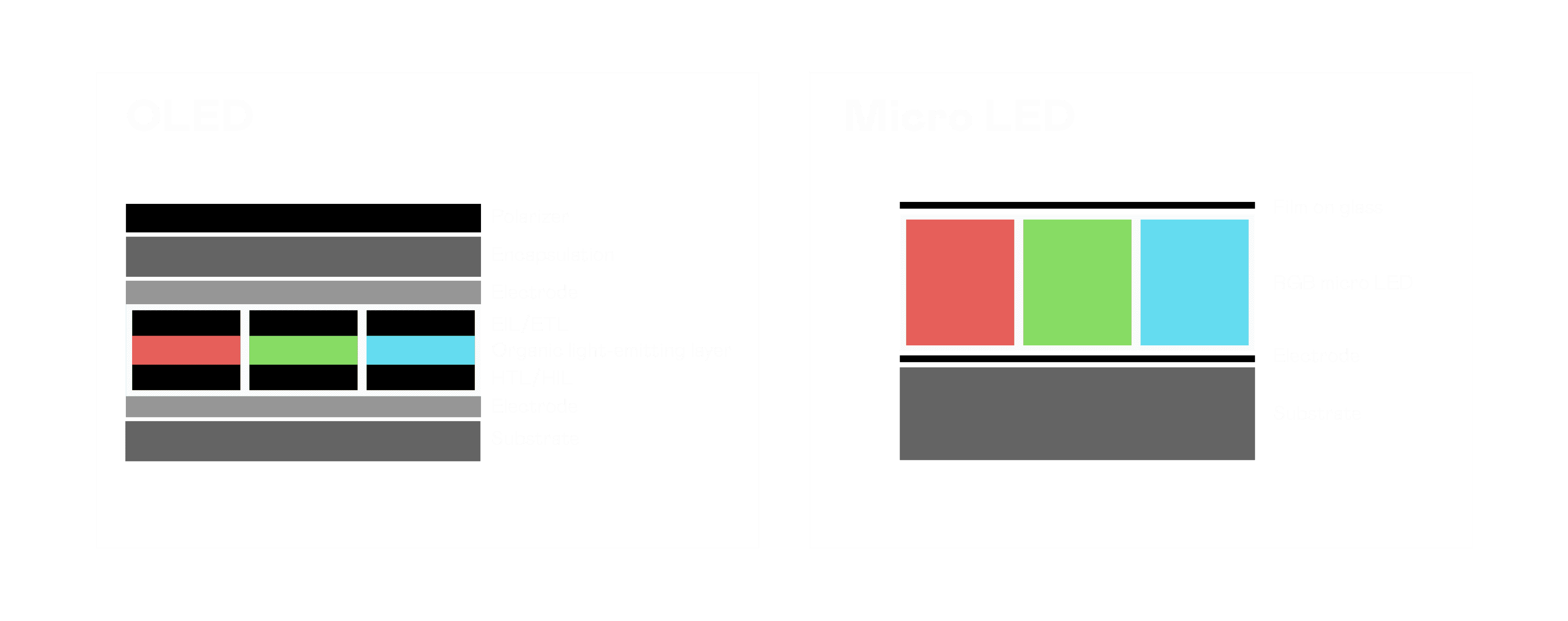 以 LED 做为显示画素,,,,可让 LED 的发光效率发挥到极致,,从而让显示器具备优异的亮度表现,,不论是在户外或室内,,,均具备出众的显示效果。。。同时,,,与使用有机材料的 OLED 相比,,,LED 具备更稳定、、、寿命更长的特性,,不仅不会有画面烙印问题,,,而且更不容易出现故障、、、、坏点。。。。