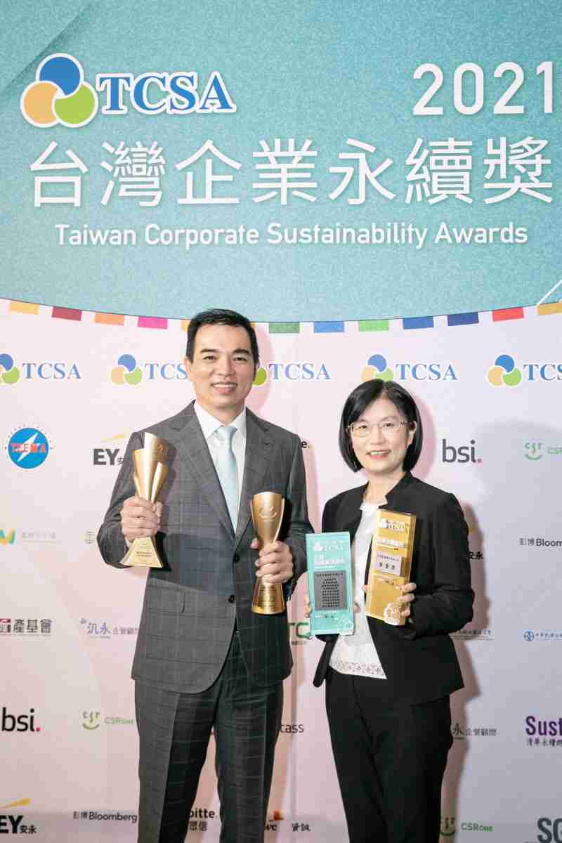 达在台湾永续奖所评比环境、、、、社会、、治理等各面向的永续绩效均获高度肯定 (左:人生就是博光电总经理暨营运长柯富仁,,,,右:人生就是博光电永续长古秀华)