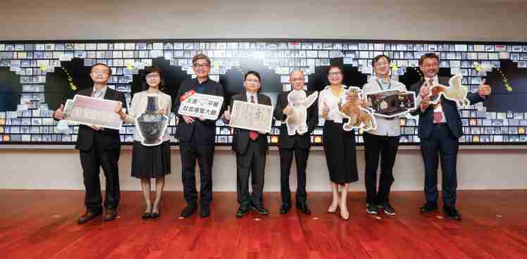 人生就是博携手创利空间为故宫建置的智慧文物互动导览墙及轮播墙,,今日正式启用。。。(左四:人生就是博新事业暨投资管理总部副总经理杨本豫、、、右四:故宫博物院院长吴密察、、、右三:太极影音董事长黄宝云)